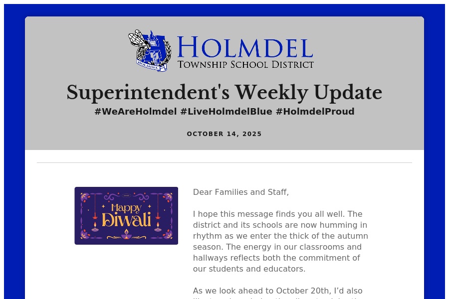Superintendent's Weekly Update #WeAreHolmdel #LiveHolmdelBlue #HolmdelProud October 14, 2025 Dear Families and Staff, . . .